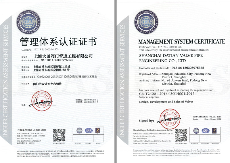 • 管理體系認證證書