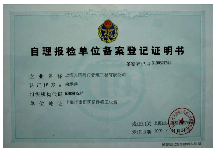 • 自理報檢單位備案登記證明書