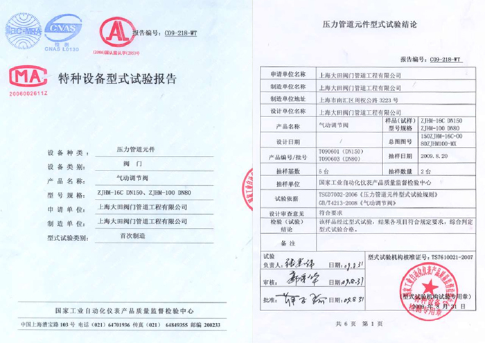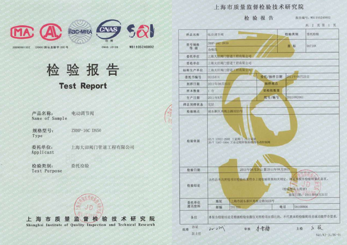 • 電動調(diào)節(jié)閥檢驗報告