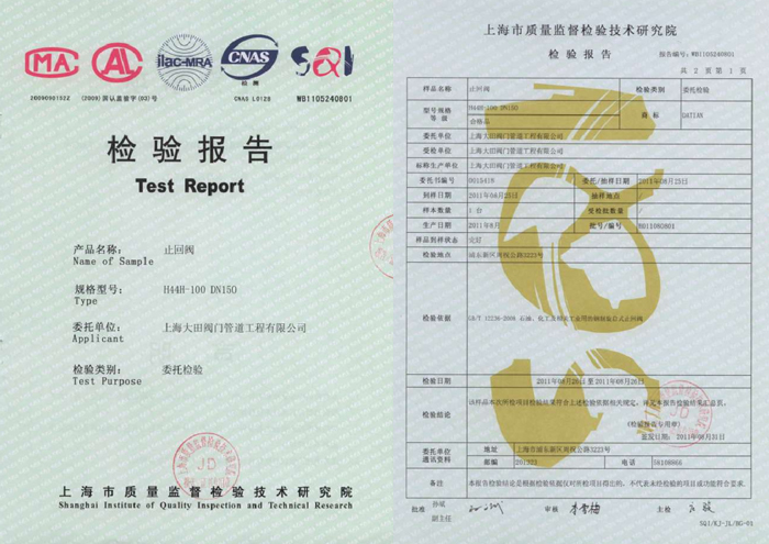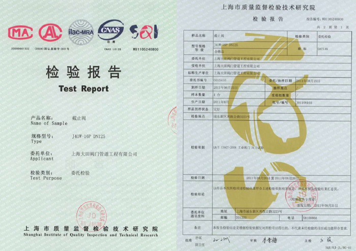 • 截止閥檢驗報告