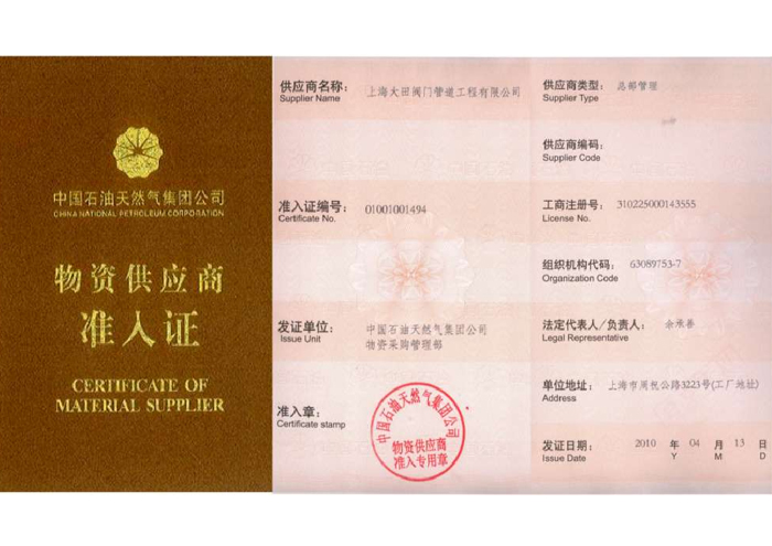 • 物資供應商準入證