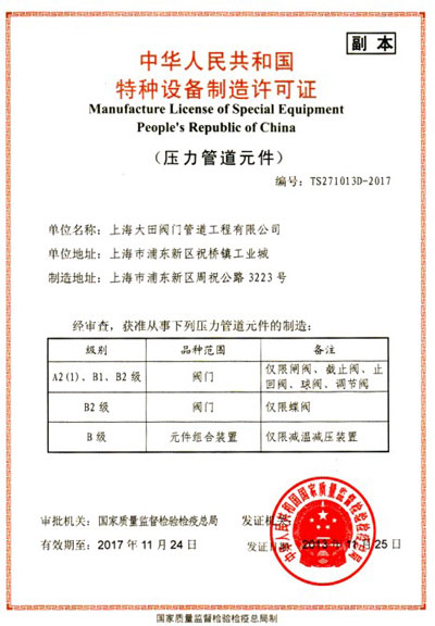 • 特種設備制造許可證
