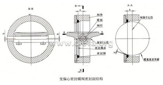變偏心密封蝶閥的密封原理圖