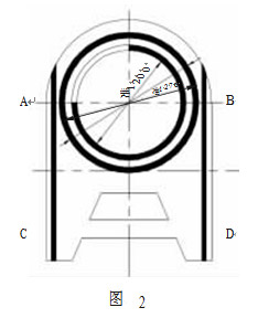 該閥體的閥座圈的外形尺寸較大,厚度 75.3mm,且中間圓孔較大,為準1200mm,總長度超過 2500mm,屬于典型的剛性較差、易變性工件。閥座圈基體材料為 ZG1Cr18Ni9Ti,環(huán)形密封面及導軌部位堆焊堆 802 硬質(zhì)合金,如圖 2 所示(涂黑部分為堆焊合金處)。以前一般按照以下工藝進行加工:先粗車上平面及環(huán)形堆焊槽,刨導軌堆焊槽,堆焊,除應力熱處理,校平,精車上下平面及環(huán)形密封面,刨導軌。 按此工藝進行經(jīng)常存在以下問題:堆焊后,座圈變形嚴重,A、B 兩部分上翹,特別是導軌尾部 C、D 兩部分上翹尤為嚴重,雖經(jīng)多次校平,但 A、B、C、D 相對應座圈背面的部分,常常加工余量不足。且加工至成品后,座圈導軌外側(cè)堆焊合金厚度不足,有時甚至沒有合金;由于該閥用于催化裂化裝置,其流通介質(zhì)為高溫、腐蝕性介質(zhì),由于合金的不足導致座圈性能大幅下降,嚴重影響其使用,閥門使用壽命縮短,甚至導致廢品的出現(xiàn)。