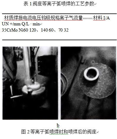 生產(chǎn)實踐證明,平行閘板閥閥座采用等離子弧噴焊工藝,與氧一乙炔氣焊手工方式焊接工藝相比,不但噴焊層組織致密、顯著提高了質(zhì)量,而且改善了施焊者勞動條件,極大提高了生產(chǎn)效率,效果較好