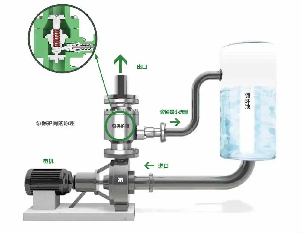 最小流量閥,也稱自動(dòng)再循環(huán)閥、三通回流閥、泵保護(hù)閥或空排止回閥。是一種安裝在給水泵出口的泵保護(hù)閥,用于防止給水泵在低于負(fù)荷運(yùn)行時(shí),由于過熱、嚴(yán)重噪聲、不穩(wěn)定和氣蝕而引起的損壞。只要給水泵的流量低于一定數(shù)值,閥的旁路回流口就會(huì)自動(dòng)地打開,以此來保證液給水泵所必需的最小流量。